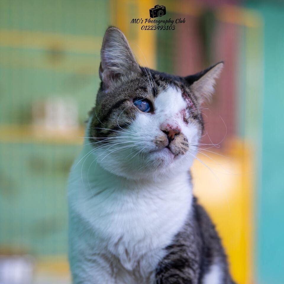 Simba was rescued from a crowded shelter, suffering from a severe eye infection and visibly malnourished.