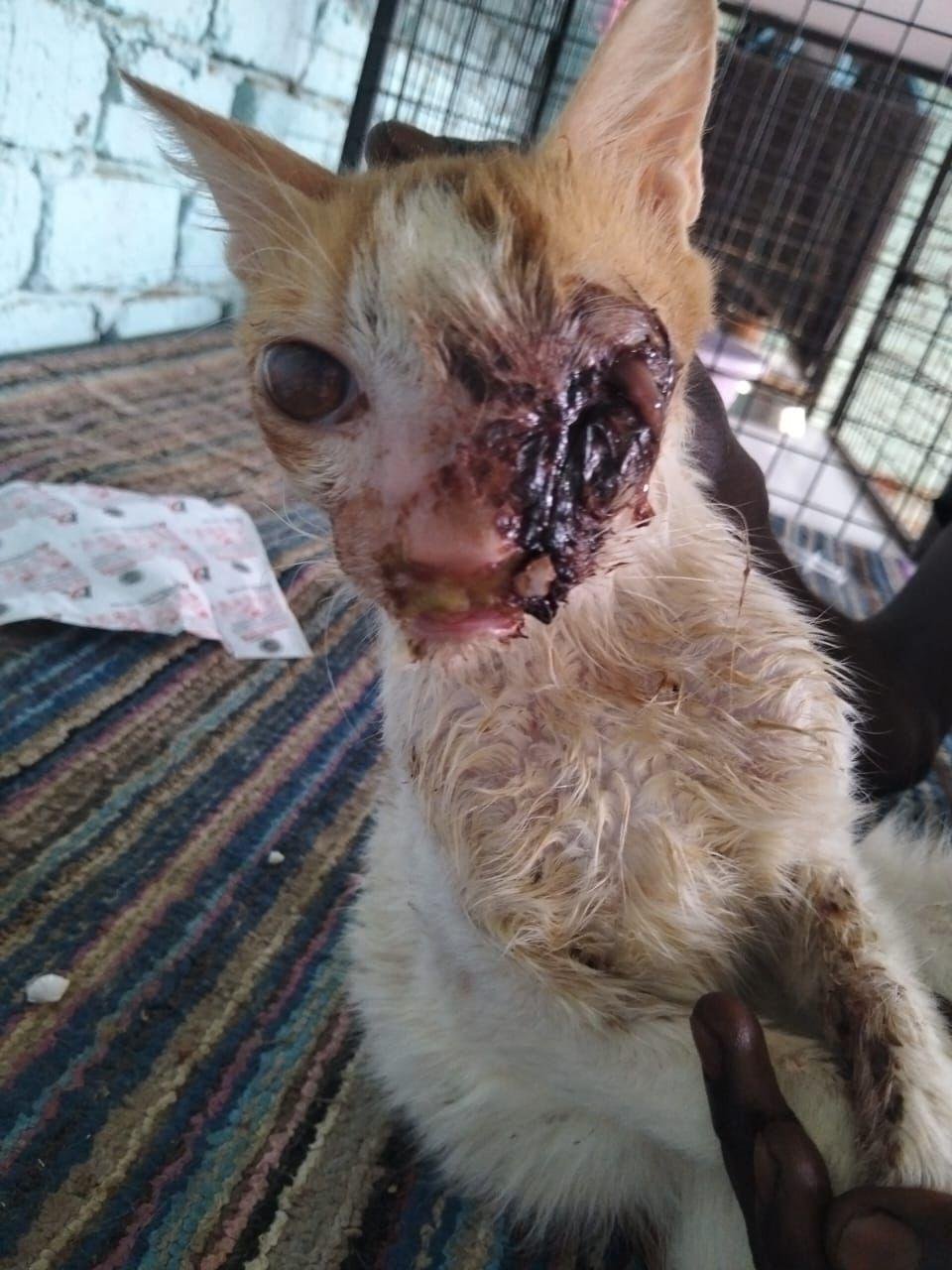 Pumpkin was found injured and alone, shivering and scared, his tiny body in need of care.